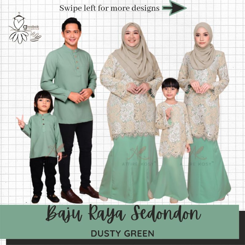 Baju Raya Sedondon Tema Warna Dusty Green Hijau Set Family Ayah Ibu Anak Baju Kurung Baju Melayu Kurta Rayafr Shopee Malaysia
